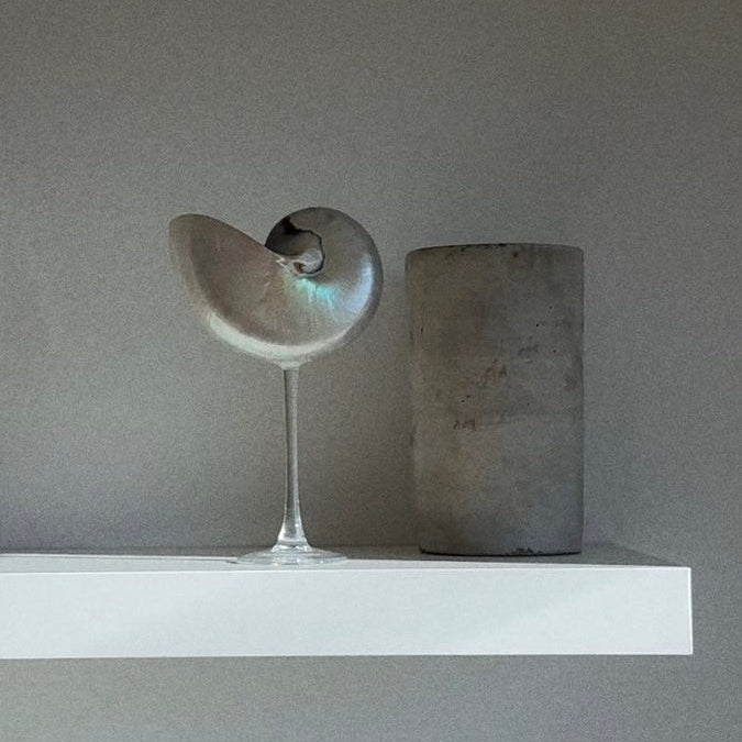 A real nautilus shell transformed into a sculptural cocktail glass — where natural form meets modern design. Each shell is selected for its shape and polished by hand, creating a unique piece for anyone who loves ocean-inspired decor and elevated glassware.